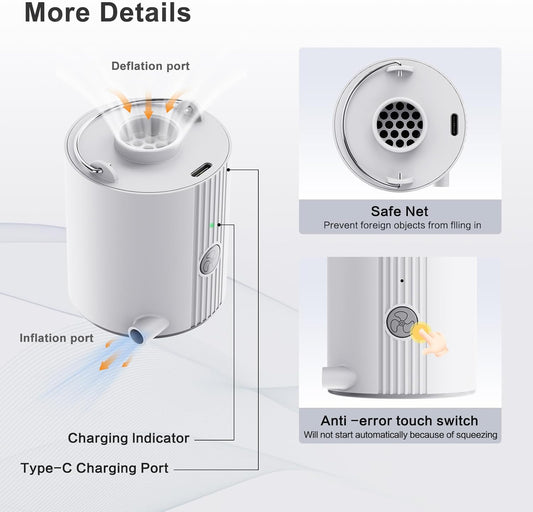 Mini Air Pump for Inflatables Portable Air Mattress Pump with 1600mAh Battery USB Rechargeable to Inflate Deflate for Air Bed, Pool Floats, Vacuum Storage Bags, Swimming Ring, Camping Gear