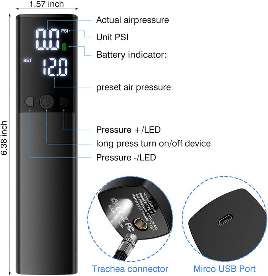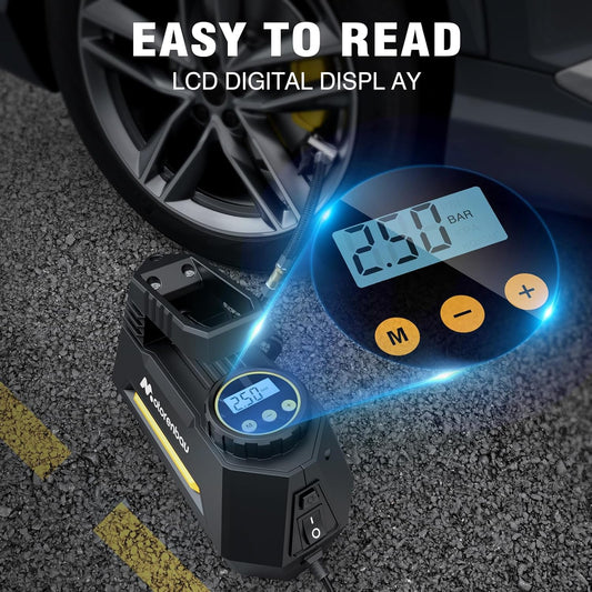 Tire Inflator Portable Air Compressor,150PSI Tire Air Pump for Car Tires,12V DC Auto Tire Pump with LED Emergency Light,Digital Pressure Gauge for Car, SUV, bicycles, basketballs,swim ring